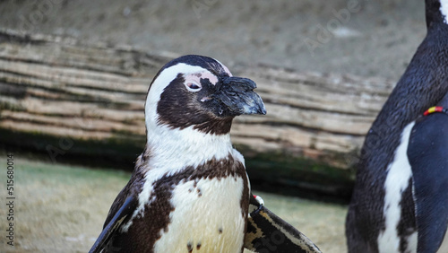 Naklejka premium Standing Spectacled penguin photographed laterally