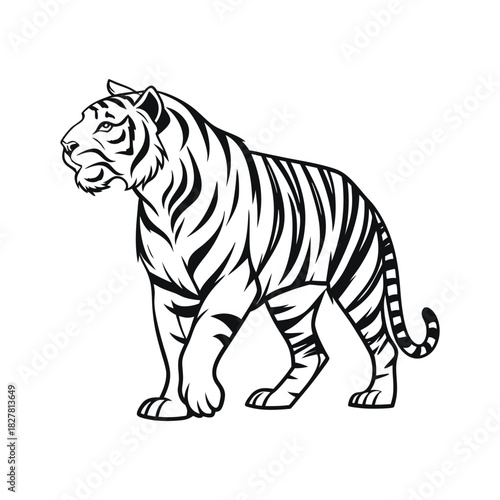 © MDKhaled, Naklejka premium Standing Tiger Vector Illustration in Black and White