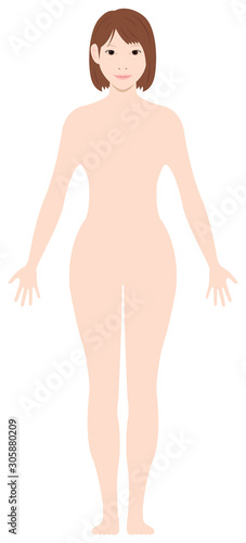 © barks, Fototapeta premium Standing woman's nude body silhouette / outline shape vector illustration