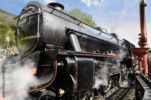 Fototapeta premium Stanier Black Five LMS 5428 Steam Engine built in 1937 arriving at Goathland...