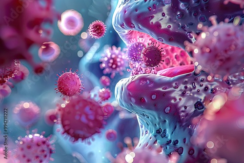 Fototapeta premium Staphylococcus bacteria infecting throat, causing angina, inflamed tonsils,...
