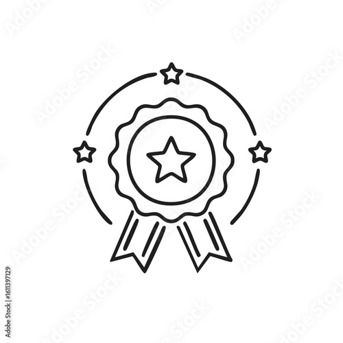 Fototapeta premium Star Award Badge with Ribbons and Circle Border Outline