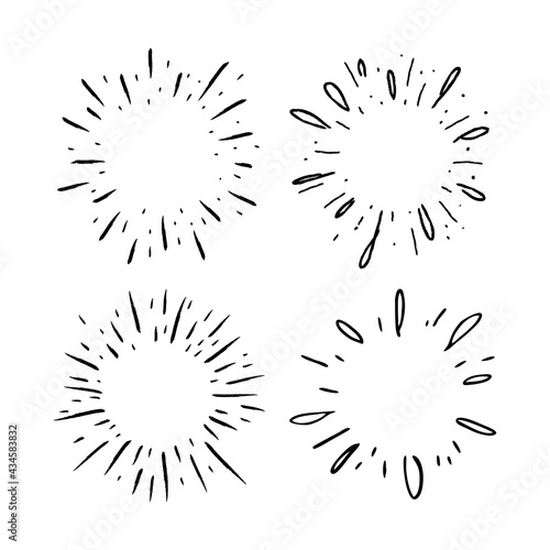 © Matias, Obraz premium Star burst hand drawn doodles. Sunburst graphic design set. Handmade radial starburst illustrations.