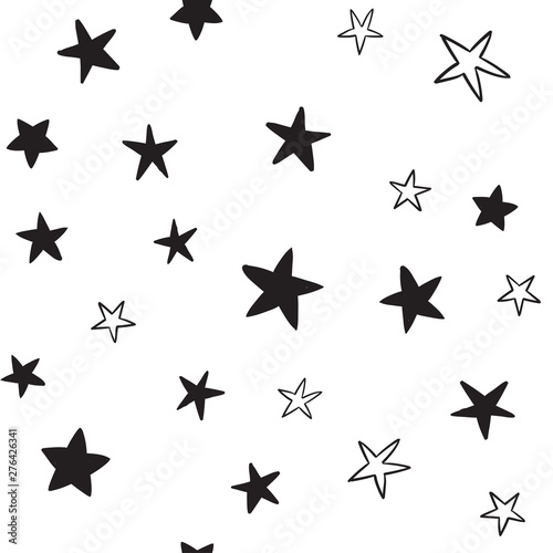 © Matias, Obraz premium Star doodles seamless pattern. Hand drawn stars texture background.