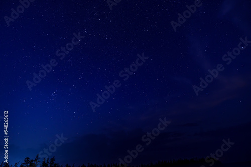 © Tommy, Obraz premium Star-filled night sky with a meteor streak and clouds