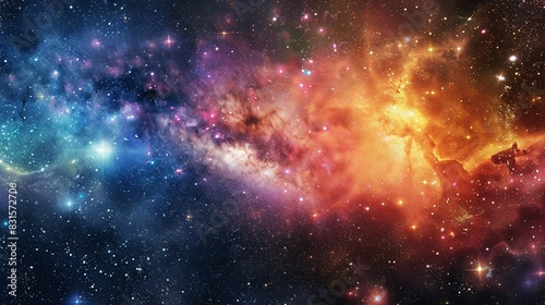 © Ahmad-Muslimin, Naklejka premium Star-Filled Space Panorama: Universe with Galaxies and Nebulae
