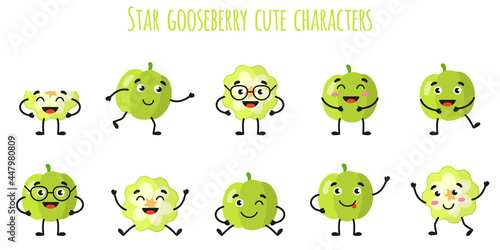 Obraz premium Star gooseberry fruit cute funny cheerful characters with different poses and...