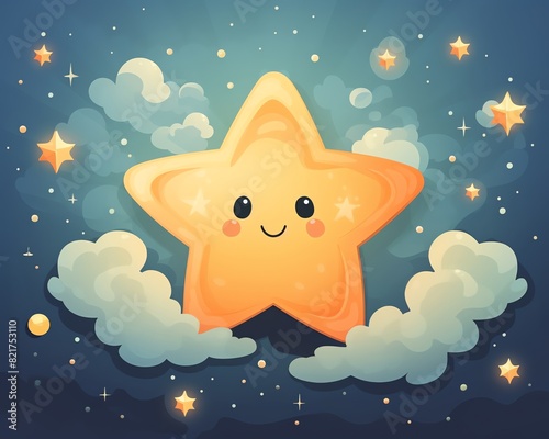 Fototapeta premium Star illustration flat design top view cosmic theme cartoon drawing colored...