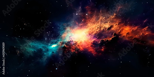 © Maximusdn, Fototapeta premium star particle motion on black background, starlight nebula in galaxy at universe Space background. Generative AI