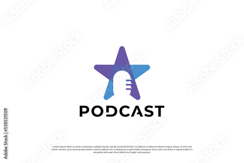 Fototapeta premium Star podcast logo design. Star with microphone combination logo concept.