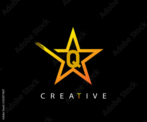 Obraz premium Star Q Letter Digital Network , technology and digital abstract Q vector logo.