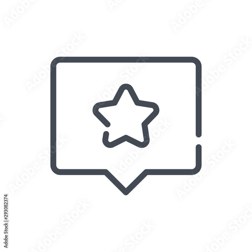 © NikWB, Obraz premium Star rating button with notification box line icon. Rate review in chat box vector outline sign.