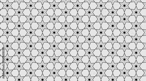 Naklejka premium Star shape luxury pattern design with 3d circle centre of each shape | Seamless pattern design with black, colour | Pattern background for web, banner, corporate, fabric, texture, cultural