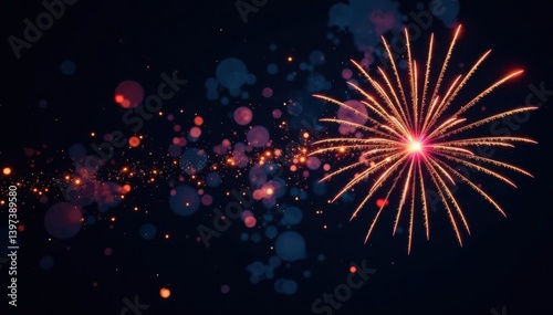 © Yuwadee, Fototapeta premium Star-shaped firework trails illuminate the black canvas , texture, pyrotechnics
