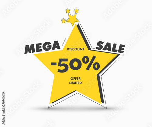 © olegphotor, Obraz premium Star yellow tag vector template for mega big sale.