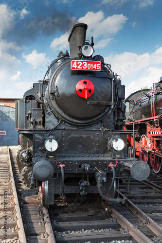 © Jacek Bernatek, Naklejka premium Stara czarna lokomotywa. Parowóz na torach