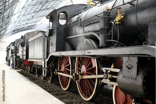© photology1971, Naklejka premium Stara lokomotywa stojąca na stacji kolejowej