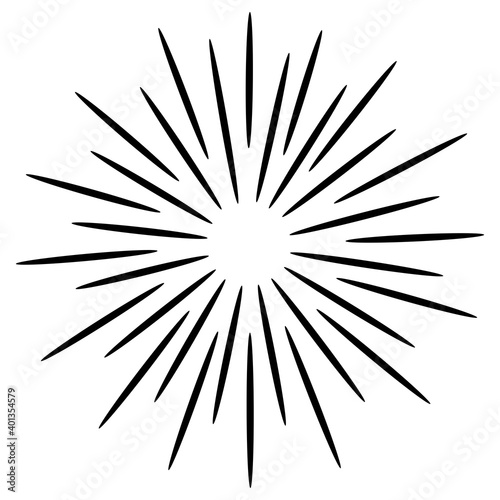 © Kebon doodle, Fototapeta premium Starburst, sunburst hand drawn. Design Element Fireworks Black Rays. Comic explosion effect. Radiating, radial lines.