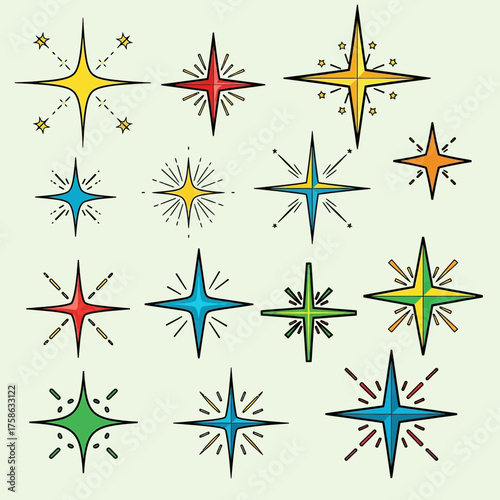 © Syarif, Obraz premium Starburst vector set various colors retro style design elements