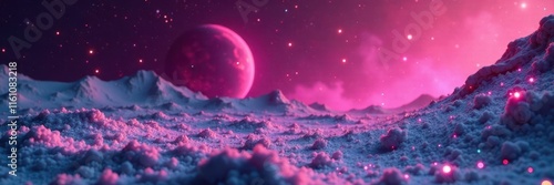 Obraz premium Stardust particles dance around magenta planet's polar regions, stardust, space