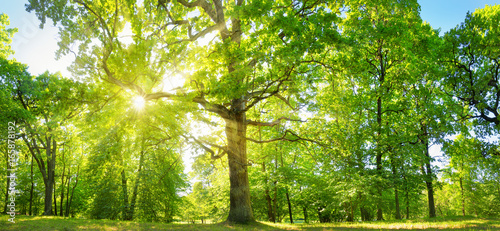 © candy1812, Obraz premium stare liście dębu w świetle poranka w świetle słonecznym