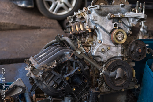 © songdech17, Fototapeta premium Stare silniki samochodowe w garażu