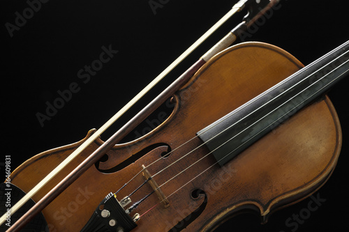 Fototapeta premium Stare skrzypce na czarnym tle
