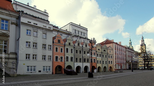 Naklejka premium Stare zabytkowe kamienice w pobliżu rynku w zabytkowym polskim mieście, Legnicy na Dolnym Śląsku