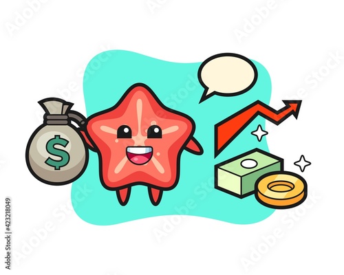 Naklejka premium starfish illustration cartoon holding money sack
