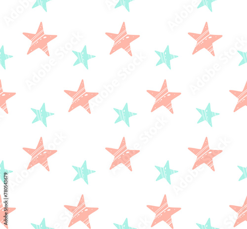 © Елена Франк, Obraz premium Starfish seamless pattern on isolated white background.