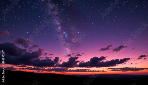 © Angelo, Naklejka premium Stargazing event over the milky way night sky photo natural landscape panoramic view cosmic wonder