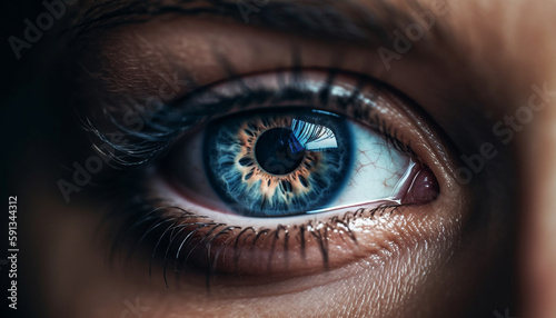 Fototapeta premium Staring woman with beautiful blue eyes observed generated by AI