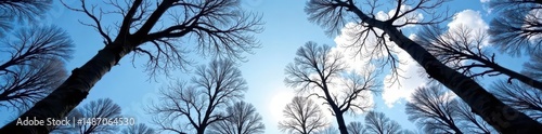 Obraz premium Stark, upward-reaching branches against a winter sky , silhouette, art, wood