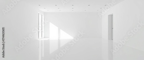 Obraz premium Stark white room, minimalist interior, clean lines, bright light, photography background, spacious