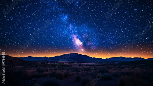 © Just1, Fototapeta premium Starlight and mountain terrain. Desert. Night. Professional photo. High detail.