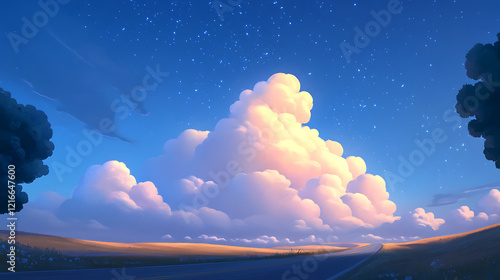 Fototapeta premium Starlit Night Sky over Serene Landscape with Illuminated Clouds