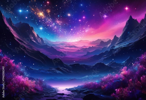 Fototapeta premium starlit nightscape featuring dazzling cosmic elements like nebulae...
