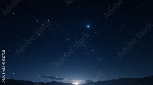 Naklejka premium Starlit sky with bright planet shining over a quiet landscape at night