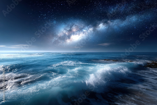 Fototapeta premium Starlit waves crashing against the shore at night under a vast sky