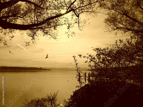 Fototapeta premium Starnberger See mit Blick auf die Alpen