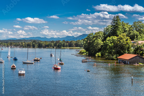 © Andy Ilmberger, Naklejka premium Starnberger See Ufer mit Segelbooten und einem Badesteg