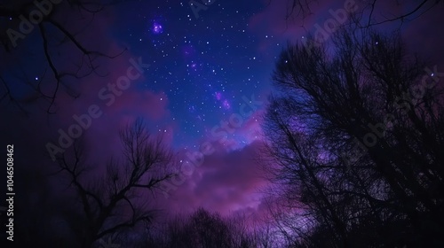 © Goncharenko, Obraz premium Starry forest landscape at night