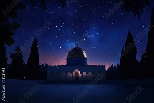 © Alokya, Obraz premium Starry night, Dome of the Rock, Jerusalem, peaceful scene