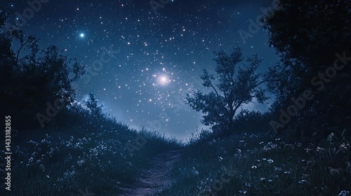 © procreation, Naklejka premium Starry Night Forest Path