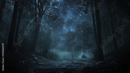 Obraz premium Starry Night in a Dark Forest