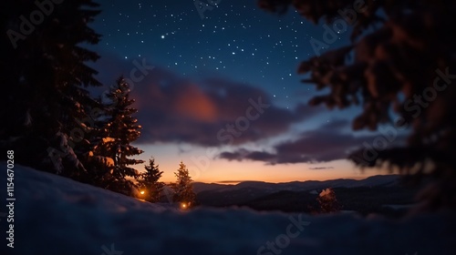 Fototapeta premium Starry Night in the Snowy Mountains