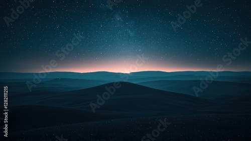 © Dece Std, Fototapeta premium Starry night landscape panorama of a vast, hilly valley at sunrise