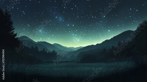 © Pixcellence, Fototapeta premium Starry Night Mountain Landscape: Serene Evening Scene