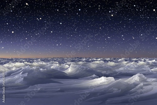 Fototapeta premium Starry night over a vast, icy plain