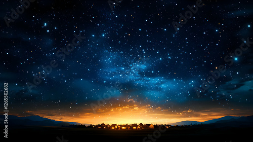 © Arthur Constantine, Fototapeta premium Starry Night Over a Village Landscape